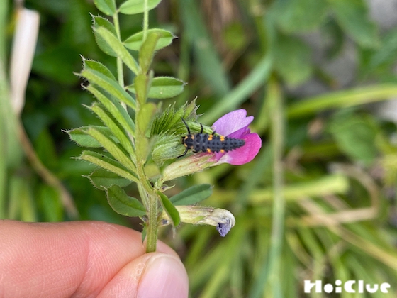 カラスノエンドウなどの、葉にとまっていることが多いです。