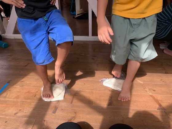 6、途中何回か生地を折り、生地が滑らかになるまで゙踏む。