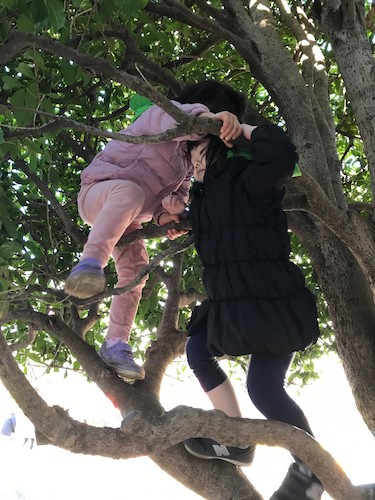 昨日から木登りがブームで、私は手を出さずに見守るようにしていたら、「足がこうだよ」と子どもたち同士が教え合って、全員が登れたんですよ。それがすごく楽しくて。