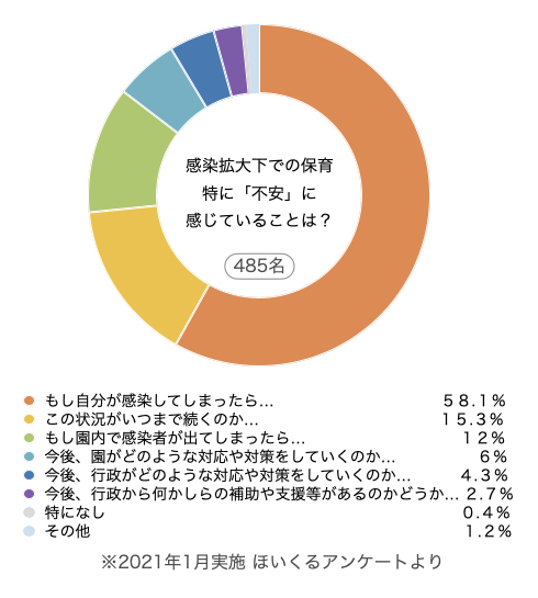 自身の感染がきっかけとなり、子どもたちや保護者、職員など関係者への感染が拡大すること、休園措置などで園運営に影響が出ることなどに、大きな不安を感じている方がとても多くいました。