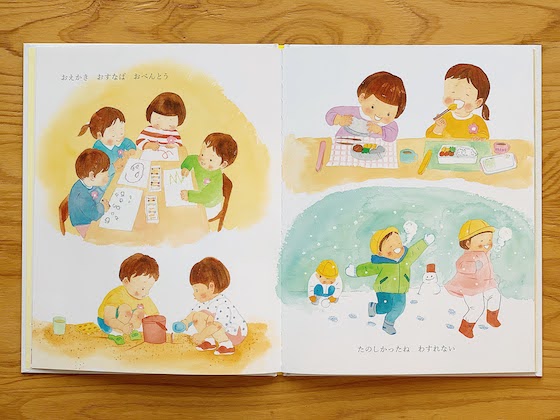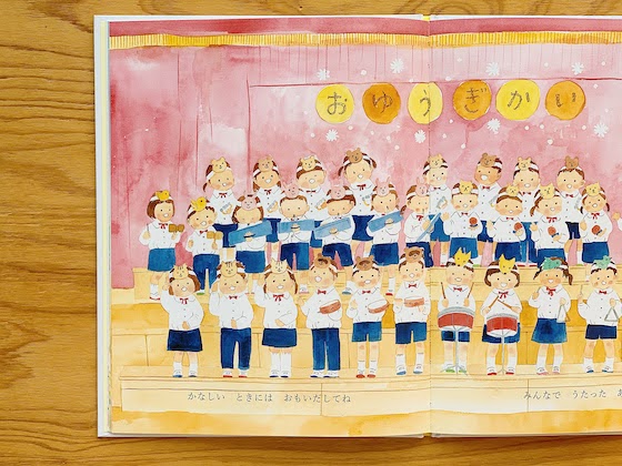 ちょうど娘さんの卒園を経験したばかりだったというえがしらさんが描く子どもたちの姿は、まぶしいくらいのびのび、いきいきとしていて、いまにも絵本の中から飛び出してきそうです。