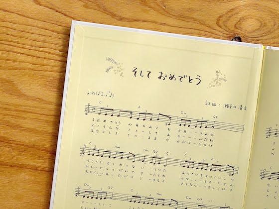 絵本には、歌「そして おめでとう」の歌詞とピアノ伴奏譜もついています。