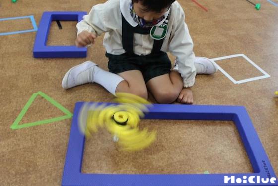 遊びを止めて興味を示し、それぞれがわくを見て遊び方を考え始める。