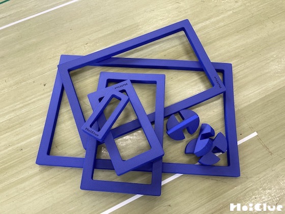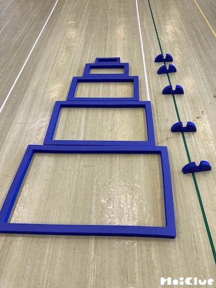 一番小さい枠を地面に立て、サッカーのようにゴール代わりにして遊んだり、ボールを当てて倒そうとしたり…