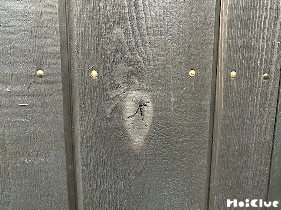 釘と木目が、見事な「くまちゃんのかお」になっているのです。