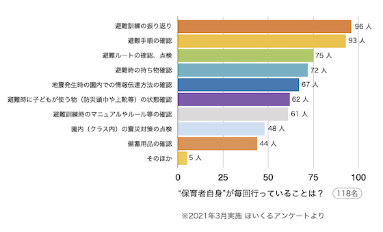避難訓練と合わせて、“保育者自身”が毎回行なっていることは?