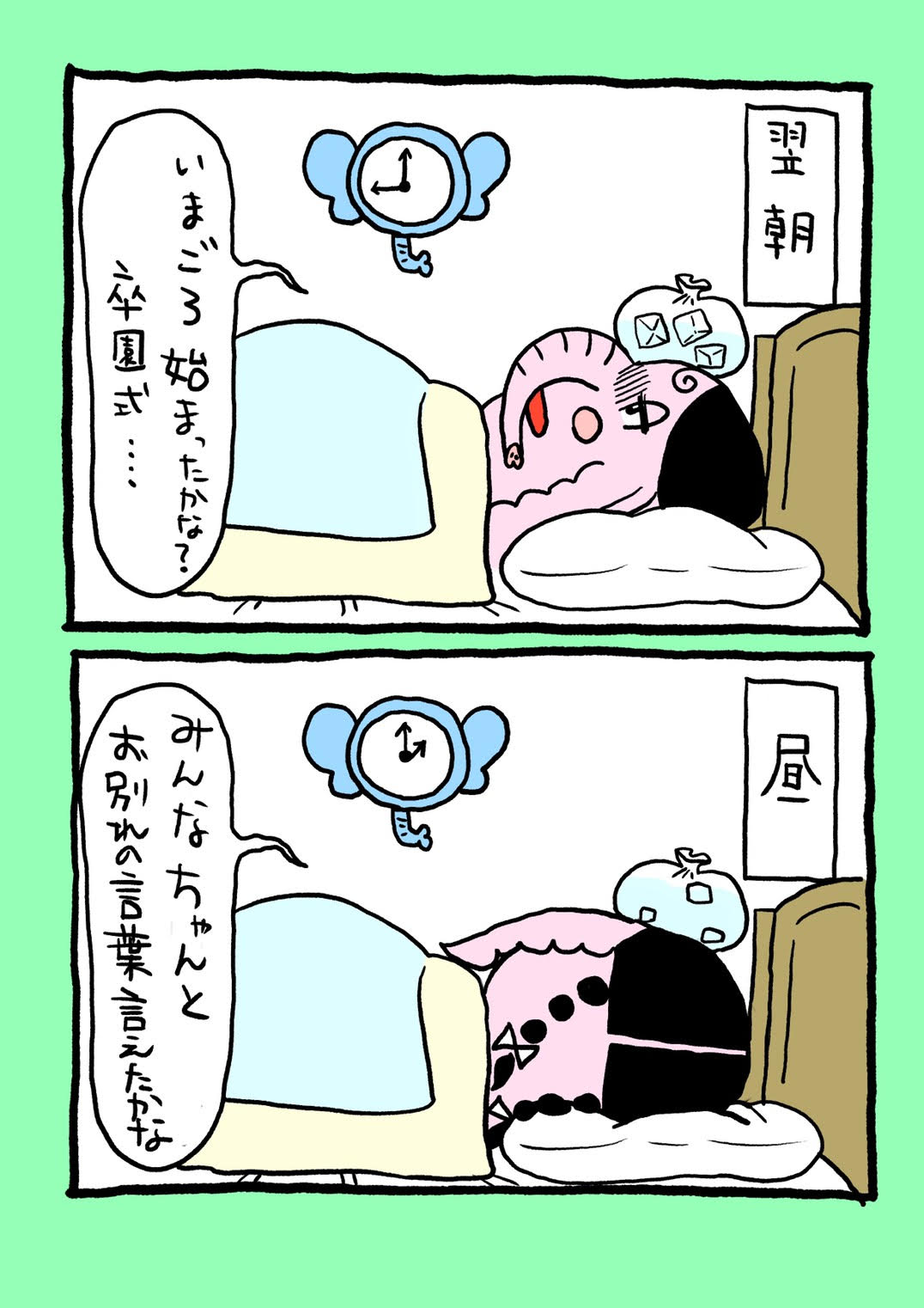 卒園式当日、具合が悪くても時計を見て「今式がはじまったかな…」とウズウズして全然寝れない。