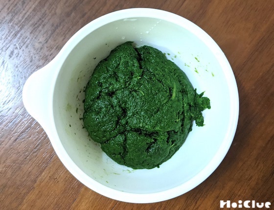 1、下処理をしたよもぎをミキサーなどで細かくペースト状にする。