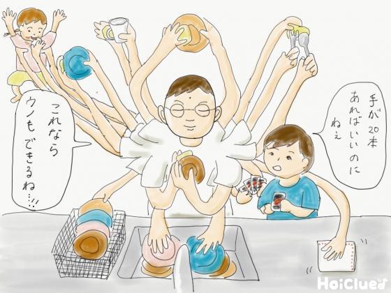 ある日、私が朝から溜めっぱなしだったお皿を洗っていたら、当時5歳の息子が「UNOしようよ」と誘ってきたんですよ。疲弊しながら「今、まだお皿が20枚ぐらいあるんだよ…」って答えたら、息子は「手が20本あればいいのにね」と一言。
