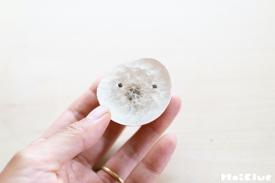 5. 「4」を、ボンドで綿毛にくっつけ、目にします。