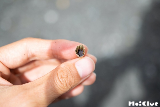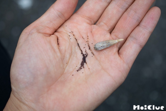 5. 穴を下に向けると…黒くて小さな種がたくさん出てきました!