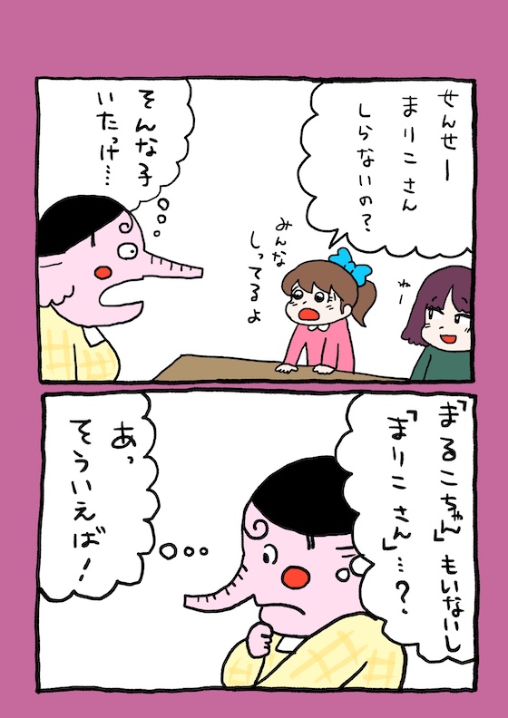 (保育園には子どもにも大人にも保護者にも丸子、まり子という名前の人はいません…)