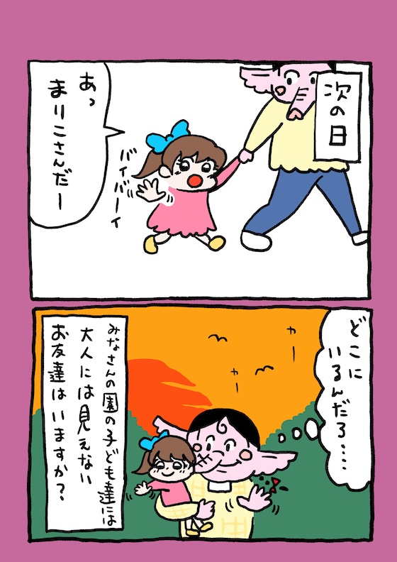 大人だけが見えない謎の“まりこ様”が、時々現れるようです…