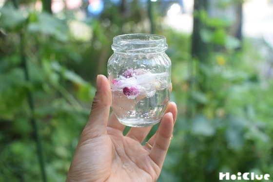10. 今度は、もう一つの瓶にクエン酸を入れてみます。
