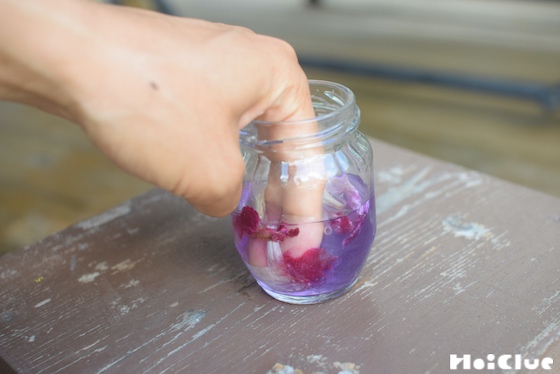 5. 指で花を揉み、色を出します。