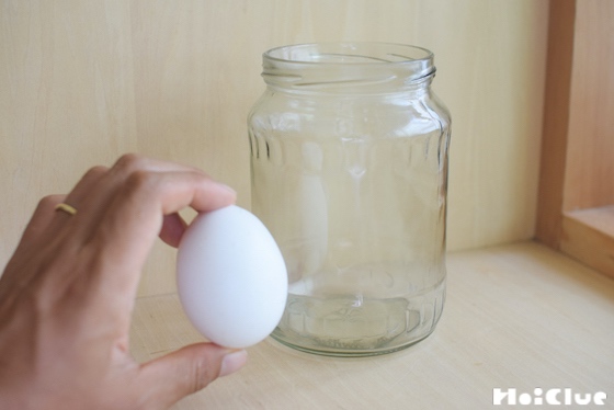 1. たまごと、たまごが入る大きさの瓶を用意します。