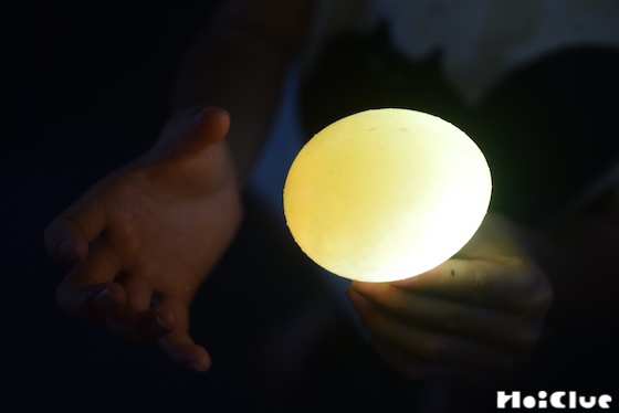 太陽の光に透かすと、うっすらと黄身がある場所も分かります!