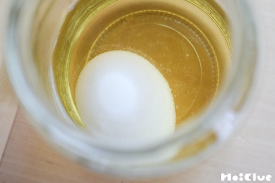 文章を読んで見ると、お酢に数日卵を浸けているだけでできるそう。