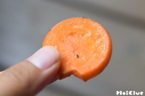 7. ニンジンを出してみると、中心に小さな穴が。