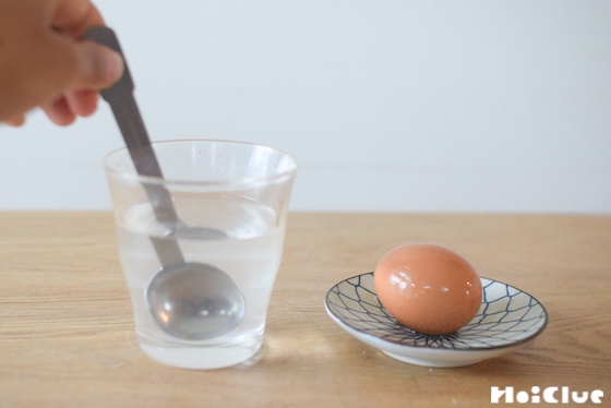 塩を入れることで、水がより重くなり、それに伴い浮力も増すため、たまごが浮くそうです。