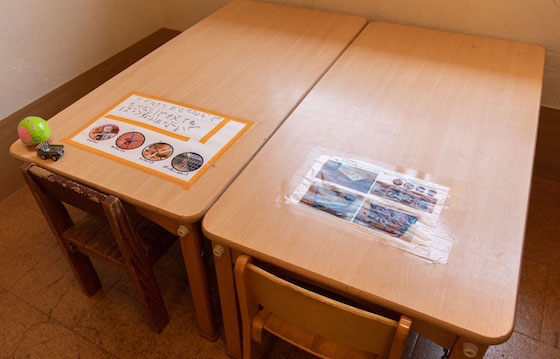 2012年に開設されたうーたん保育園では当初から喀痰(かくたん)吸引(*1)や経管栄養(*2)を要する医療ケア児を受け入れてきました。保護者と相談のうえで0歳児の部屋で保育を行っていたのですが、手狭になってきたため昨年医療ケア児クラスことり組を新設、ランチルームの隣の保育室で、6人の子どもが生活しています。障がいがあっても口頭でのコミュニケーションが可能な子どもは該当年齢のクラスに入っています。