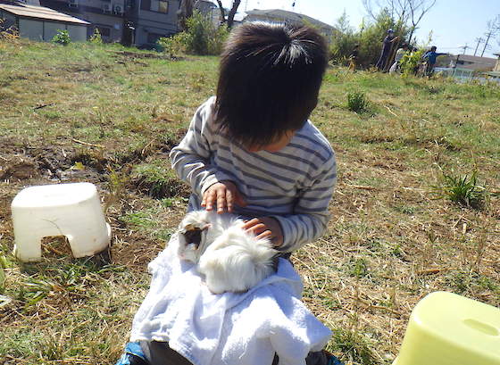 でも、この間りんごの木では、学年ごとに1時間と決まってはいるけど、時間だから帰るわよというまでは子どもたちは自由にしてよかったですよね。そうすると、好きなところに行って、飽きたらあっちいこうって。そうかと思うと、ずーっと同じモルモットを抱っこしている子もいたりして。