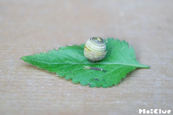 コセンダングサの葉をお皿に種をフォークに見立てて、こびとのごはんのできあがりです!