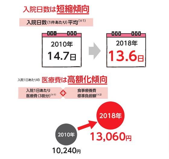 入院日数が減ってきているという話は聞いたことがありましたが、入院費が高くなっているというのは、初めて知りました。