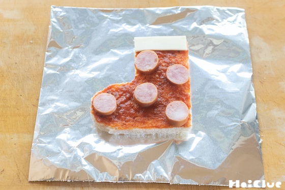 クリスマスブーツのピザトースト〜素材/食パン 〜