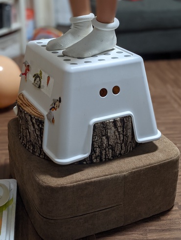・机やイスを出してわざわざジャンプする遊びをするのはハードルがある…大きいイスなら安定してるのでは?