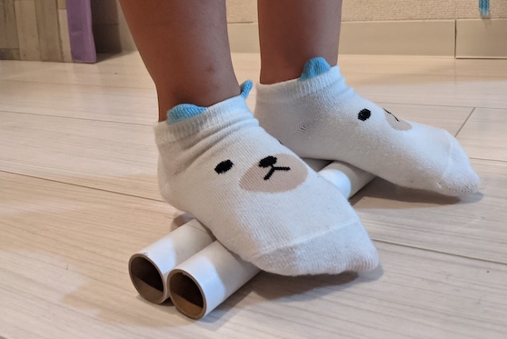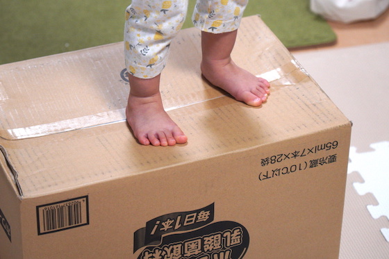 ・「せーの!」の掛け声で乗ってみる(ものの素材や大きさによって滑ったり転倒したりに注意!)