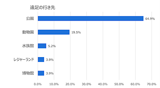 一番多かったのは「公園」で約65%、動物園、水族館などがその後に続きました。