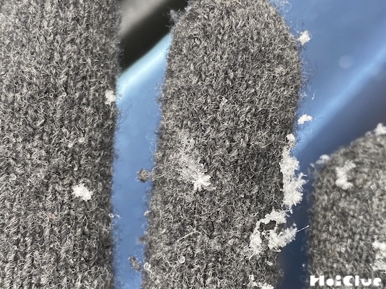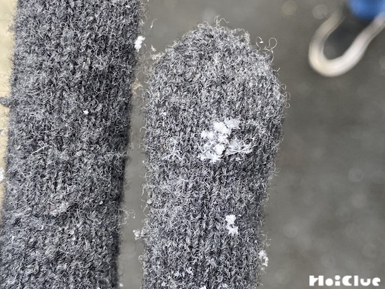 2. 黒やグレーの布に、雪を付着させて観察してみましょう。