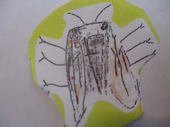 出来上がった標本は他のクラスからも話題になり、園内全体に広がっていった。だりあ組のAくんやBくんが中心になって、昆虫研究所を開き、異年齢の子どもたちにも作った標本を見せたり、図鑑で調べた昆虫の生態についても詳しく教えるなど、学び合いの時間が生まれた。標本を見に来た子どもたちは、それを眺めて観察しては、図鑑と照らし合わせたり、昆虫の絵を描くようになった。今まで絵をあまり描かなかった子どもも、標本を見ながら描くことで、羽の模様や、足の細部の毛先などにも気づき、