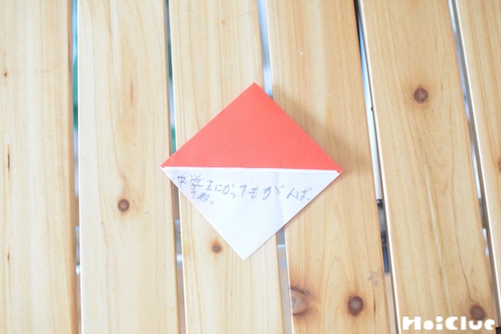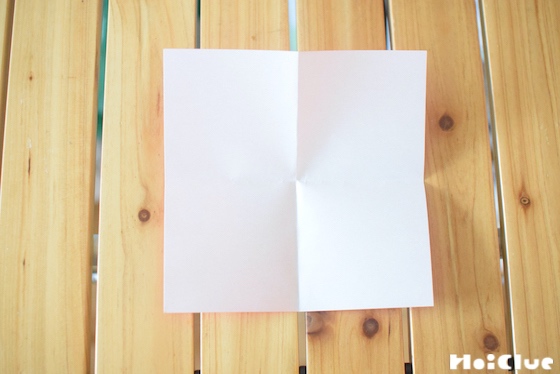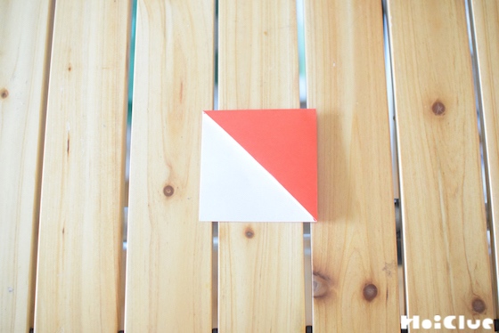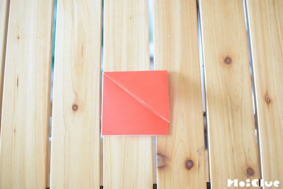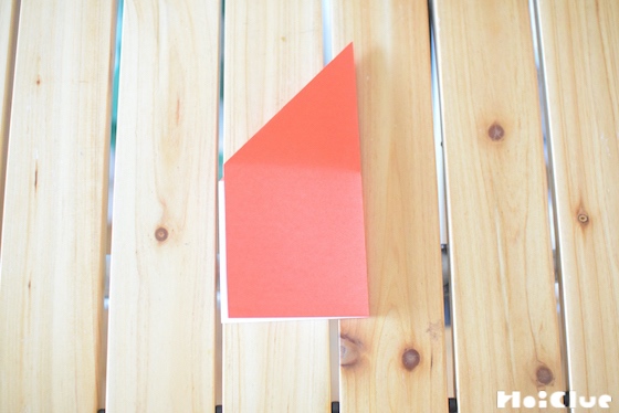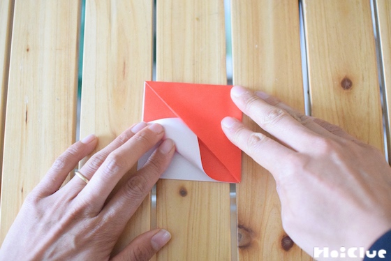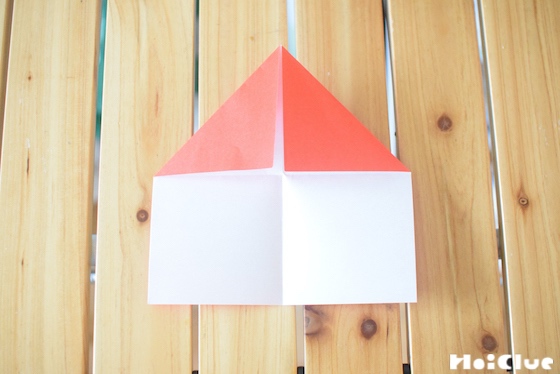 5. 写真のように、上の2ヶ所を中心に向かって三角に折ります。