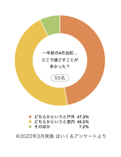 今から一年前の4月当初、どこで過ごすことが多かった?