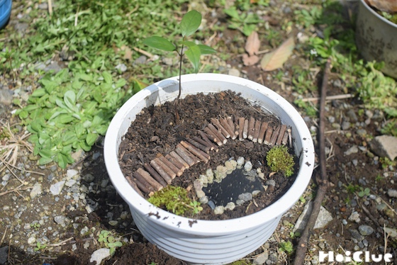 10. 短くカットした小枝を敷いて、小道を作ってみました。