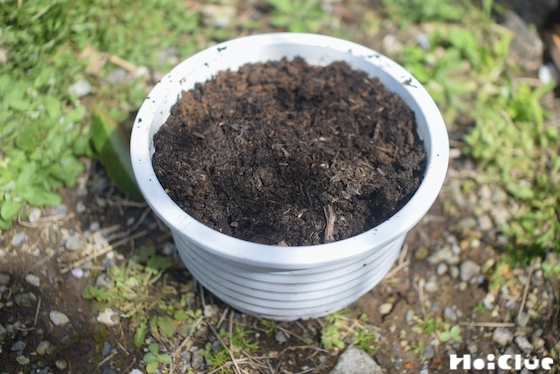 5. 植木鉢や鍋に、土を入れます。