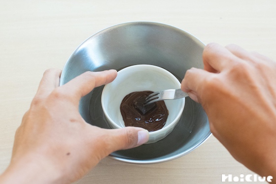 5. フォークなどでチョコをぐるぐる動かすと、だんだん溶けてきます。