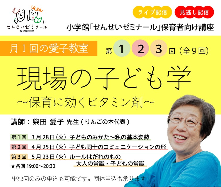 3月よりスタートした新シリーズの講師は、ほいくるでも「井戸端aiko」の連載や、過去になんどもお話を伺ってきた、りんごの木子どもクラブの柴田愛子さん。