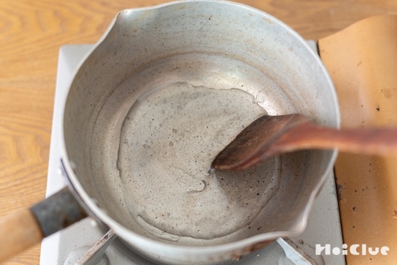 火を使う作業になり、また焦げ付かないよう手早く作業する必要があるため、大人が手伝いながら子どもに作業してもらうか、子どもたちに水飴の変化を見てもらいながら、大人が作業することをおすすめします。