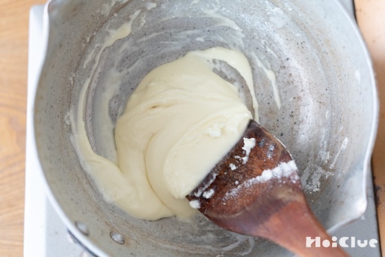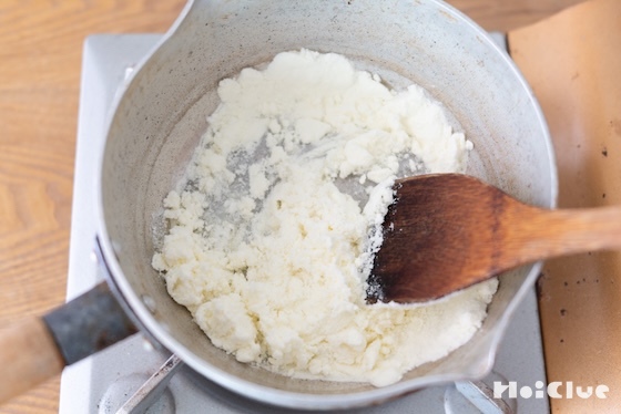 4. 全体がお餅のように滑らかになり、まとまったら、火を止めます。
