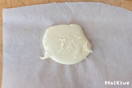 5. 小鍋の中の飴の素を、クッキングシートの上に出しましょう。