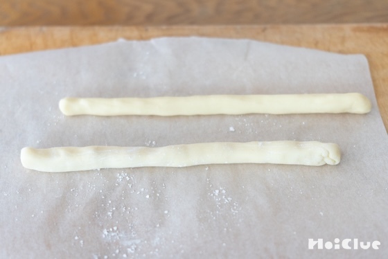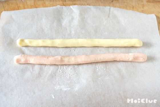 4. 20cmほどの長さにできたら、白い千歳飴の完成です!工程「1」で分けたもう半分も、長く伸ばしましょう。