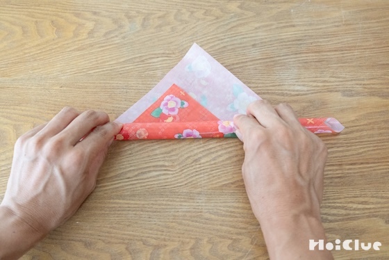3. 上のワックスペーパーを、千歳飴の下に巻き込みます。