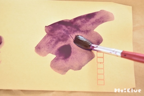 好きな太さの筆を選んで、封筒にさつま芋の色を塗る。