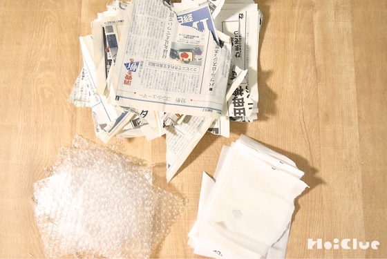 1. 茶封筒に緩衝材や新聞紙など好きな素材を入れる。封筒に詰められれば、どんな素材でもOK。