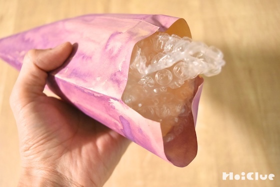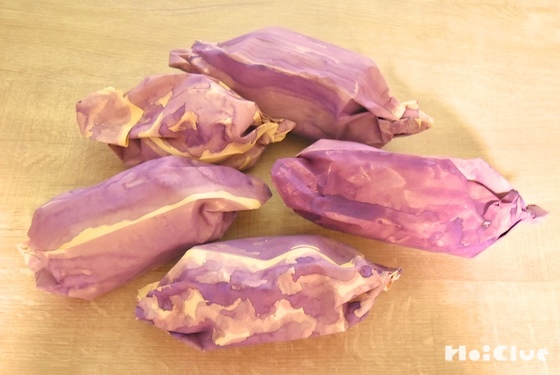 両端を止めたら、封筒があっという間にさつま芋に変身。