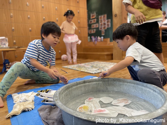 夏の終わりに、おおきいぐみ(5歳児)の子たちが、いつもより遅い時間まで遊べる特別な1日を過ごしました。題して“お楽しみ保育”。