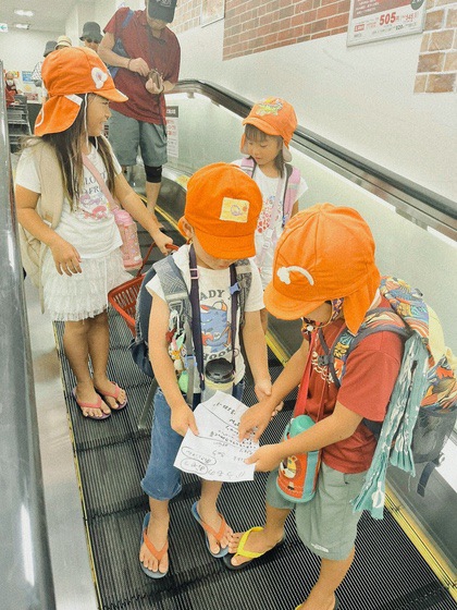 お泊まり保育前日。リュックを背負った子どもたちは、元気いっぱいに買い出しへ。